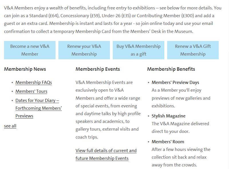 Цены: основная экспозиция - вход бесплатный, временные выставки – от £8 до £25, льготы для Членов Клуба Музея Виктории и Альберта